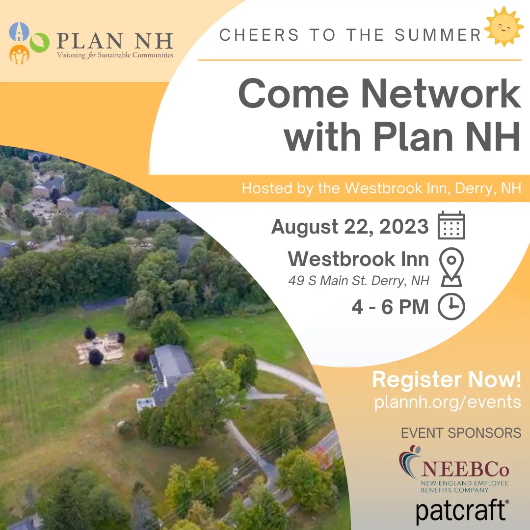 Join us Tuesday, August 22 at The Westbrook Inn, a new event venue located in Derry, NH (and new Plan NH Member!). Enjoy light refreshments and catch up with Plan NH members and other colleagues from the planning, design, and development fields. $10 Plan NH Members; $15 Non-Members.