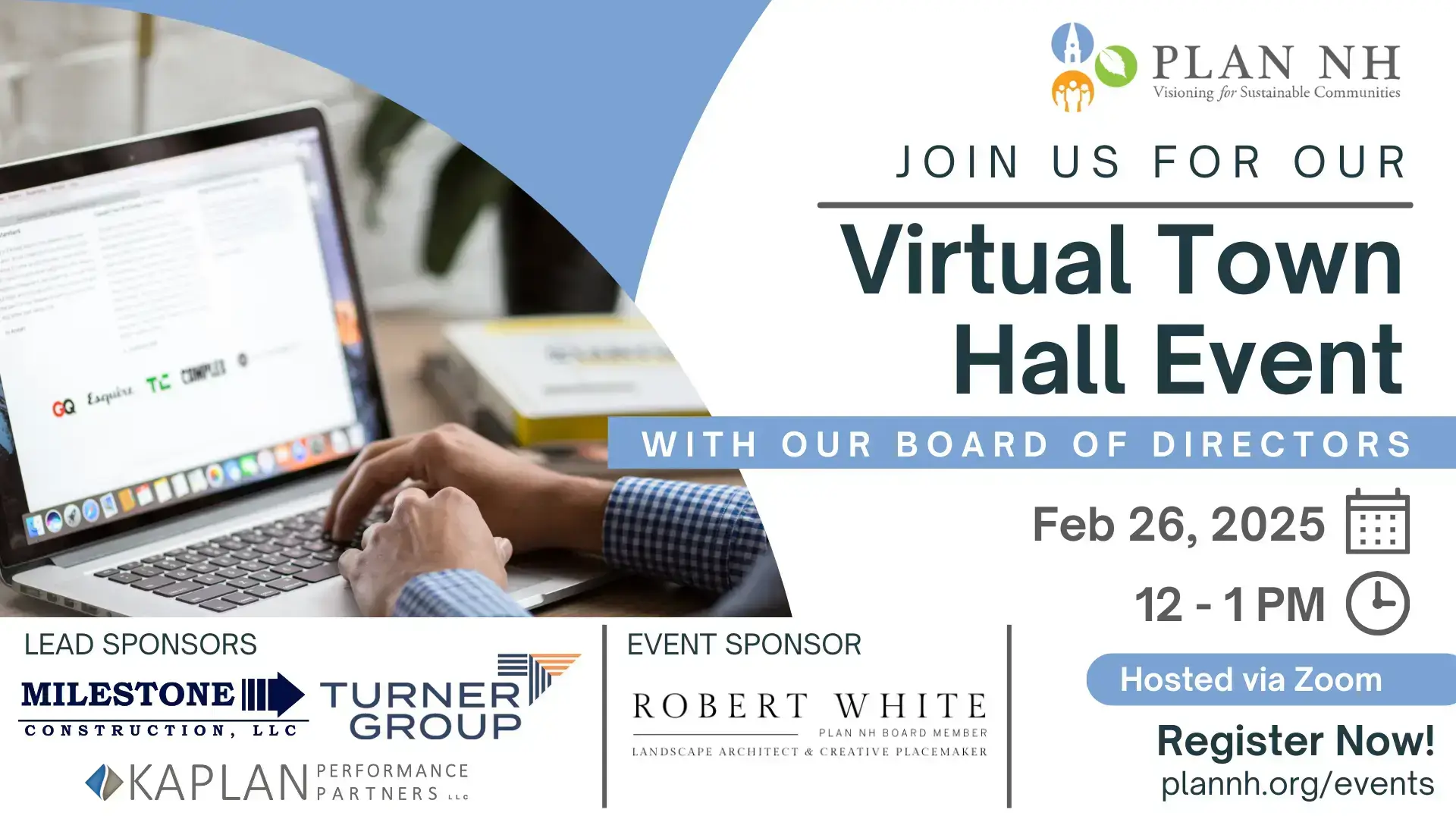 Join Plan NH for our virtual Town Hall on Wednesday, February 26, 2025. We will look back at all that was accomplished in 2024 and discuss our outlook for 2025 and beyond. This is your chance to ask questions, toss out ideas, and find out how to get involved with Plan NH.