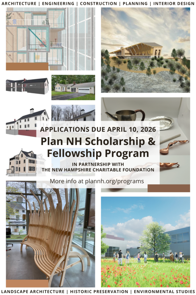 PORTSMOUTH, N.H. – Plan NH is now accepting applications for the Plan NH Annual Scholarship and Fellowship Program, calling on designers, artists, and future leaders of the built environment to apply by April 10, 2026. The program supports New Hampshire residents pursuing education in fields aligned with Plan NH’s mission to foster excellence in planning, design, and development.