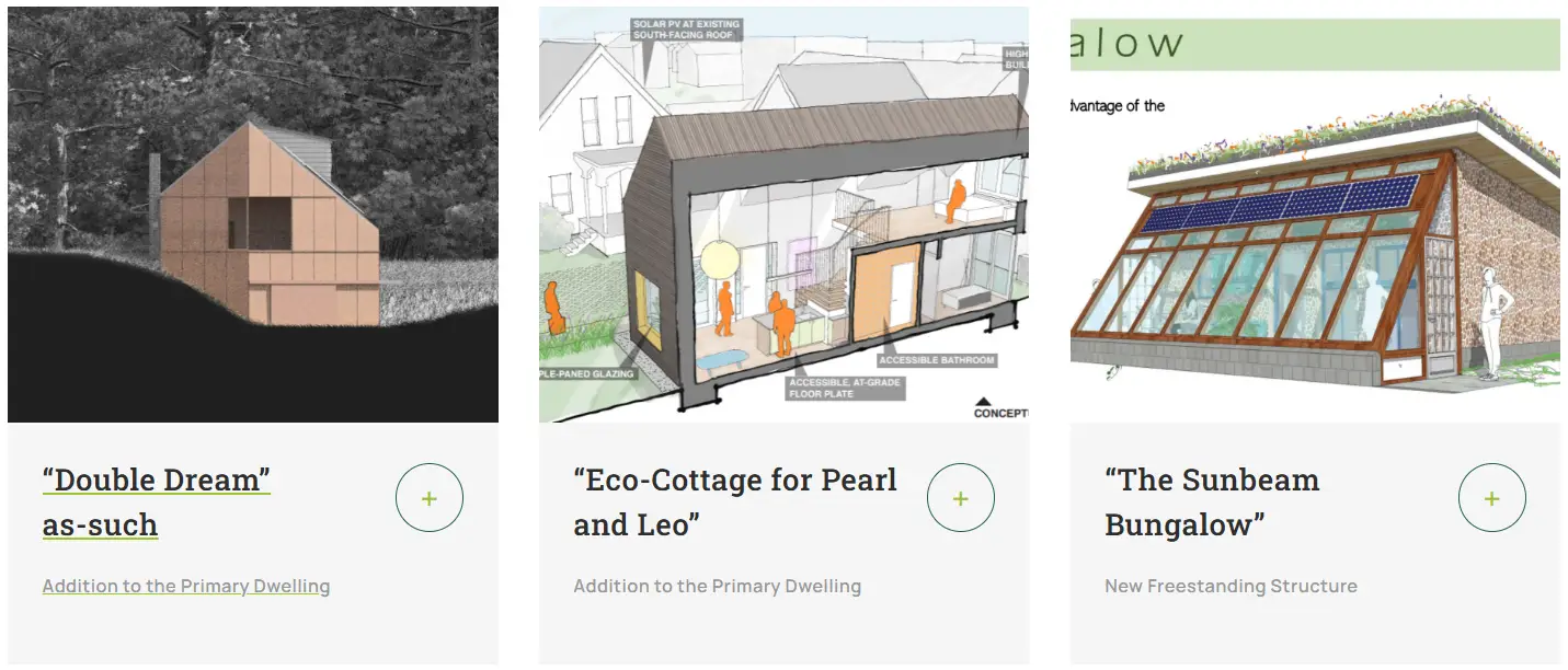 Architects were invited to respond to real homeowner case studies and submit a design for one of three categories: Addition to the Primary Dwelling, New Detached Structure, or Adaptive Reuse of an Existing Structure. All submissions were asked to consider sustainability, affordability, accessibility, innovation, aesthetics, as well as the specific homeowner’s needs, goals, and site characteristics.